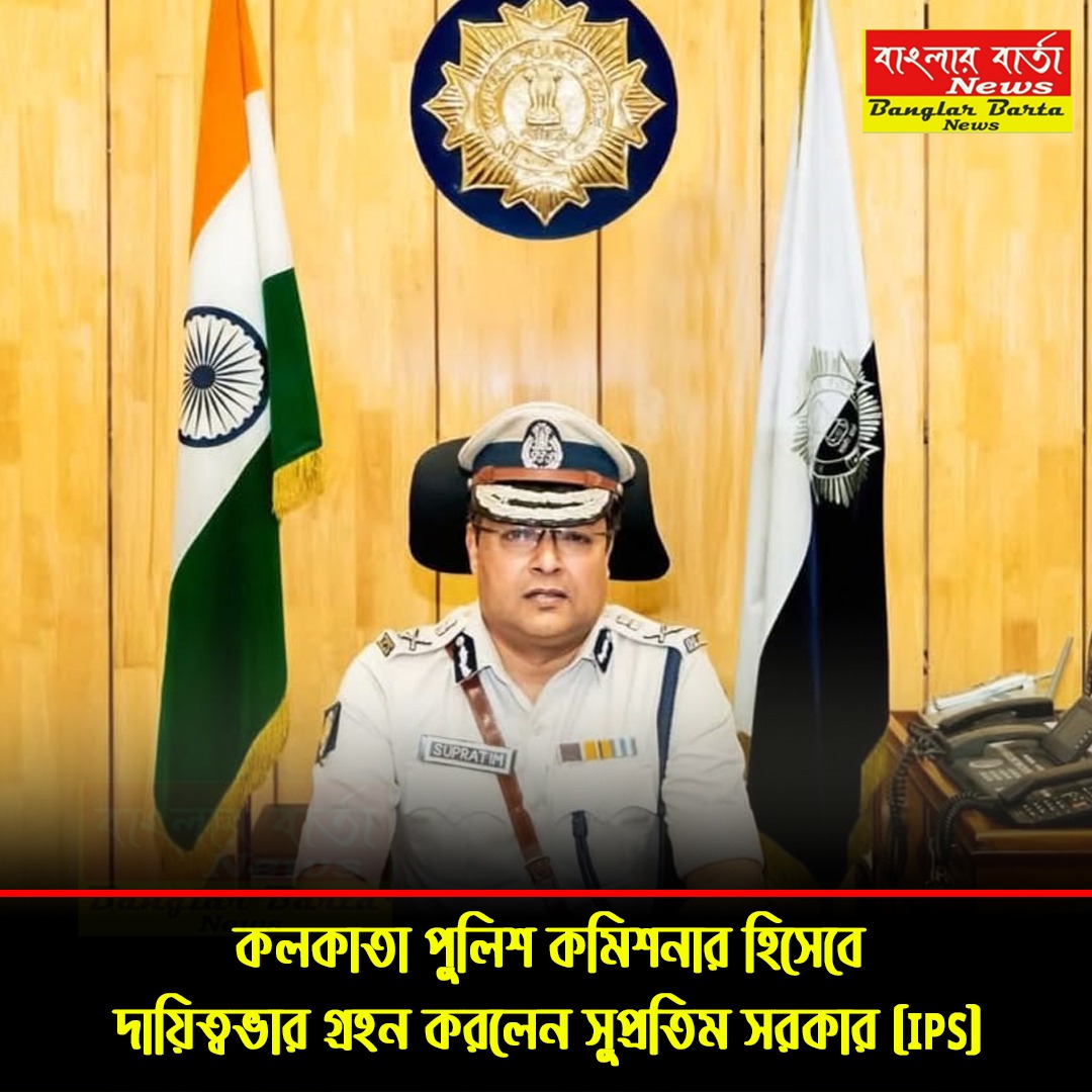 Uncategorized কলকাতা পুলিশ কমিশনার হিসেবে দায়িত্বভার গ্রহন করলেন সুপ্রতিম সরকার(IPS) By Banglar Barta News - January 31, 2026 0 21 Share Facebook Twitter Pinterest WhatsApp কলকাতা পুলিশ কমিশনার হিসেবে দায়িত্বভার গ্রহন করলেন সুপ্রতিম সরকার(IPS)
