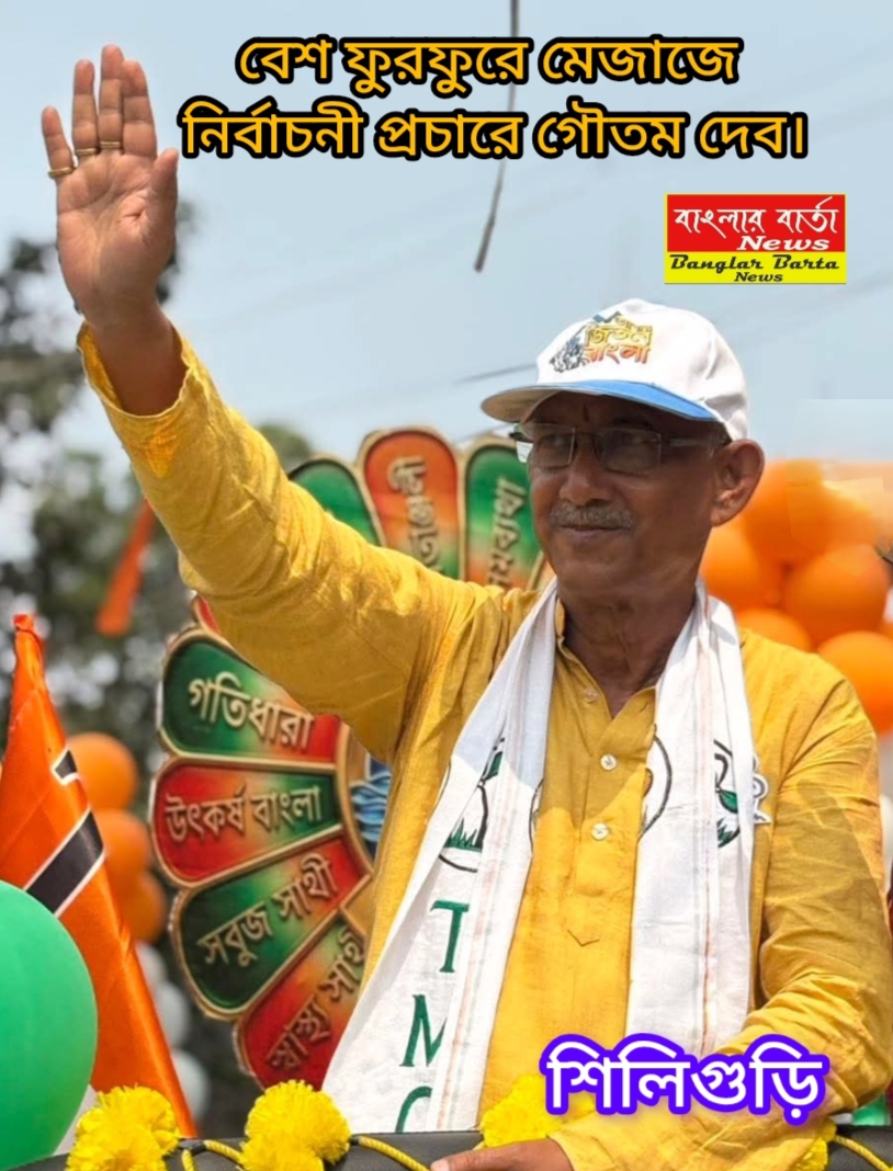শিলিগুড়ি বিধানসভা কেন্দ্রের তৃণমূল প্রার্থী গৌতম দেব রোড শোতে বেস্ট ফুরফুরে মেজাজে।